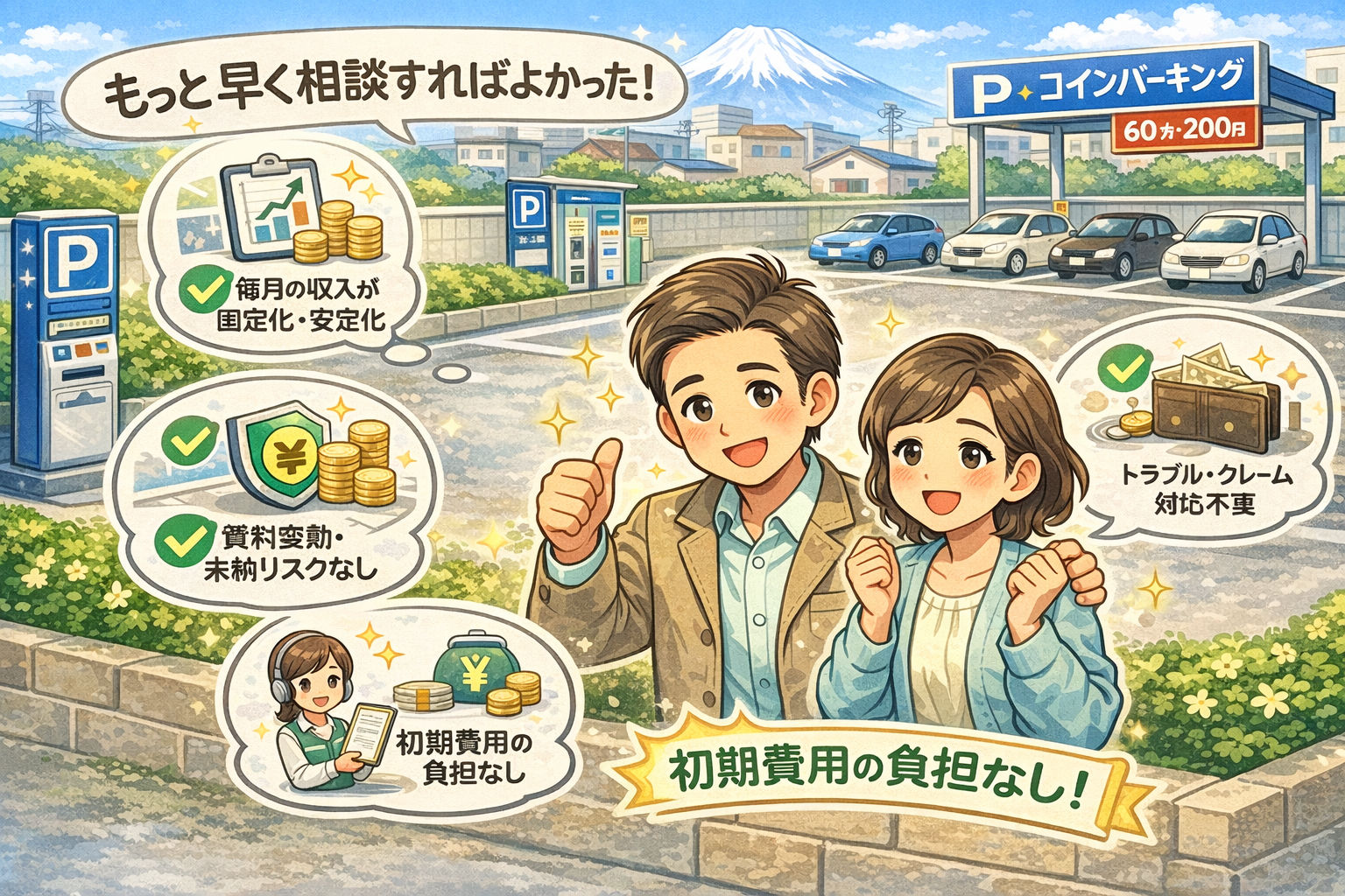 時間貸駐車場(コインパーキング)へ転換後、オーナー様には以下のようなメリットが生まれました。